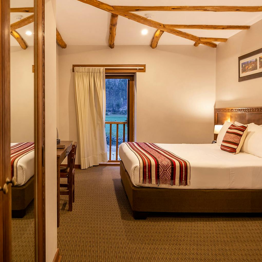 アイロンとアイロン台、乾燥機、暖房、ケーブルテレビ、ミニバーが備わる客室です。